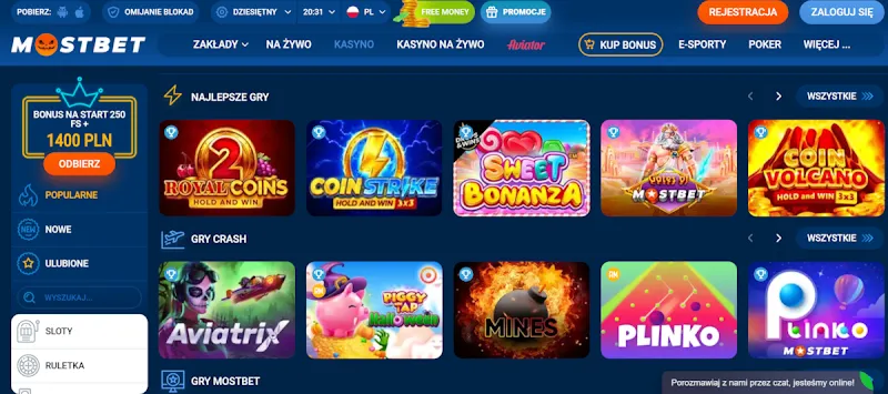 - Bogata oferta gier: Na platformie dostępne są zarówno klasyczne sloty, jak i gry na żywo, takie jak ruletka, blackjack czy poker. Ponadto, mostbet games oferuje popularne gry typu "crash", które cieszą się rosnącym zainteresowaniem.